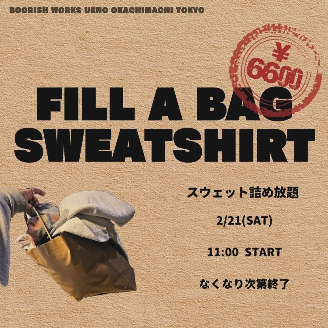 詰め放題の為に仕入れたスウェット放出しますので前回来れなかった方、暇だし行ってやるかって方、ぜひお待ちしております。